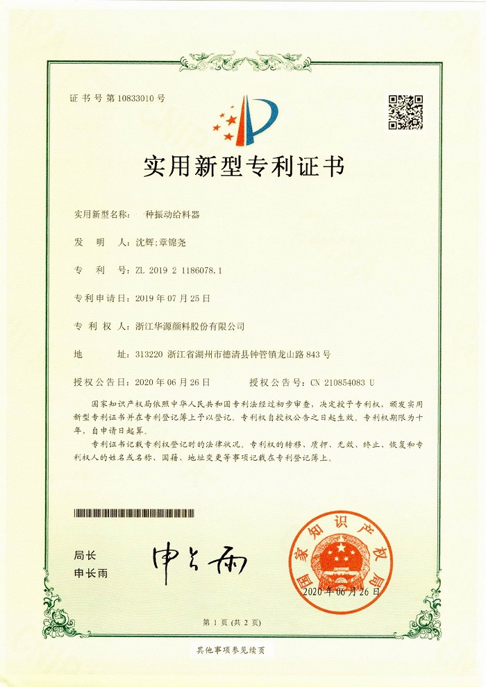 迄今為止,華源顏料已獲得授權專利51項,其中發(fā)明專利26項、實用新型專利25項,這些專利成果為華源顏料的持續(xù)經(jīng)營發(fā)展提供了強有力的支持。華源顏料將繼續(xù)在新產(chǎn)品、新技術、新工藝的研發(fā)上加大投入,不斷提升企業(yè)核心競爭力,為客戶帶來更優(yōu)質(zhì)的產(chǎn)品和更完善的服務。