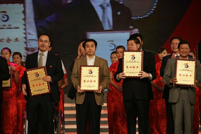 10月11日,第八屆全國殘運會愛心助殘晚會在杭州黃龍體育館隆重舉行。省委副書記、省長呂祖善等省領(lǐng)導(dǎo)分別為升華等捐贈企業(yè)頒發(fā)了愛心獎牌。集團(tuán)黨委副書記、副總經(jīng)理鮑希楠(圖中)代表升華集團(tuán)登臺接受“愛心企業(yè)”企業(yè)獎牌。據(jù)悉,第八屆全國殘運會將于2011年10月11日在杭州舉辦,也是第八屆全國殘運會倒計時一周年紀(jì)念日。為了辦好殘運會,當(dāng)好東道主,升華集團(tuán)等省內(nèi)近百家著名企業(yè)慷慨解囊,為盛會的籌備捐資助殘。中國殘聯(lián)主席張海迪,第八屆全國殘運會籌委會主任、省委副書記夏寶龍在晚會上致辭,副省長陳加元主持。