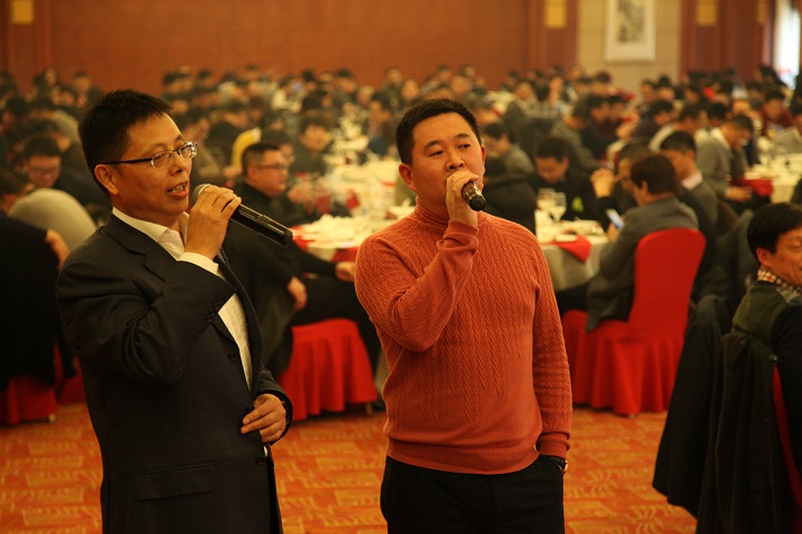 宴會上,公司董事長夏士林?jǐn)y夫人錢小妹、總裁吳夢根、常務(wù)副總裁錢海平,副總裁王菊平、朱根法、王鋒,集團(tuán)黨委副書記鮑希楠共同舉杯,向先進(jìn)模范人物,向參加年會的全體將士及其他員工,致以新春最美好的祝福,向他們道聲“辛苦了!”,對大家的辛勤付出表示由衷的感謝。
