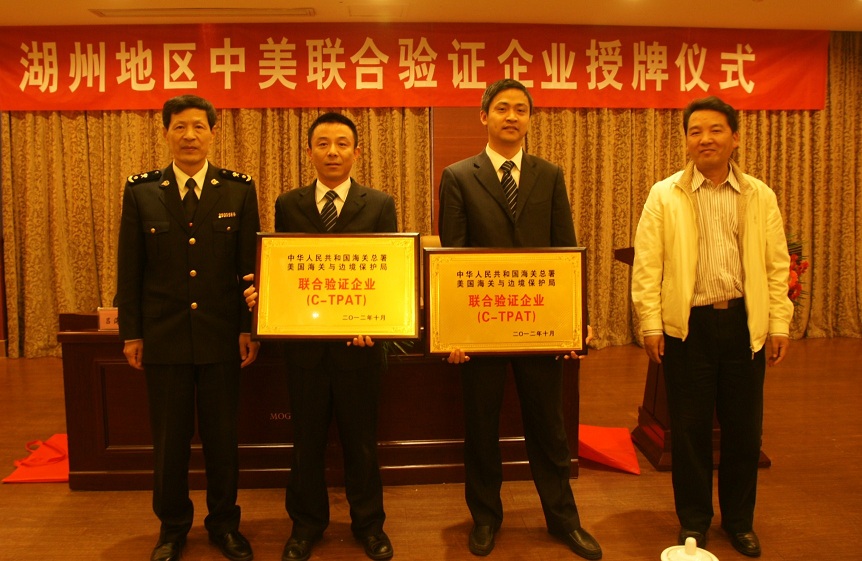 符合要求的企業(yè)不出國(guó)門(mén),就能獲得企業(yè)輸美貨物在美國(guó)通關(guān)時(shí)的便利措施。11月12日下午,湖州地區(qū)中美聯(lián)合驗(yàn)證企業(yè)授牌儀式在我縣莫干山大酒店舉行,云峰新材兩骨干子公司浙江升華云峰進(jìn)出口有限公司、德清縣升強(qiáng)木業(yè)有限公司獲得由國(guó)家海關(guān)總署、美國(guó)海關(guān)與邊境保護(hù)局共同簽發(fā)的C-TPAT聯(lián)合驗(yàn)證證書(shū)。湖州海關(guān)關(guān)長(zhǎng)殷杭俊、德清縣副縣長(zhǎng)王少華出席授牌儀式,云峰新材總經(jīng)理沈衛(wèi)文在授牌儀式上發(fā)言。