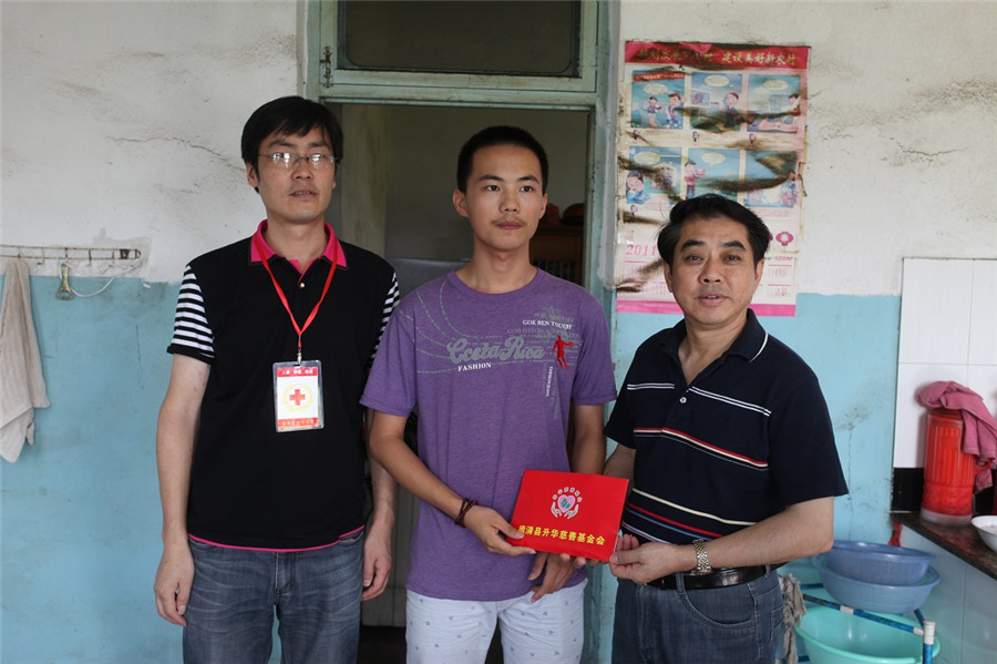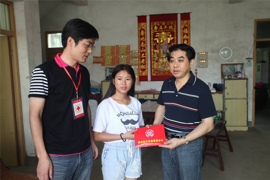當(dāng)天,受吳夢根一家人的委托,鮑希楠帶隊,縣紅十字會及升華慈善基金會相關(guān)部門負(fù)責(zé)人向首批5位大學(xué)生或準(zhǔn)大學(xué)生送去了總共5萬元的博愛助學(xué)金。