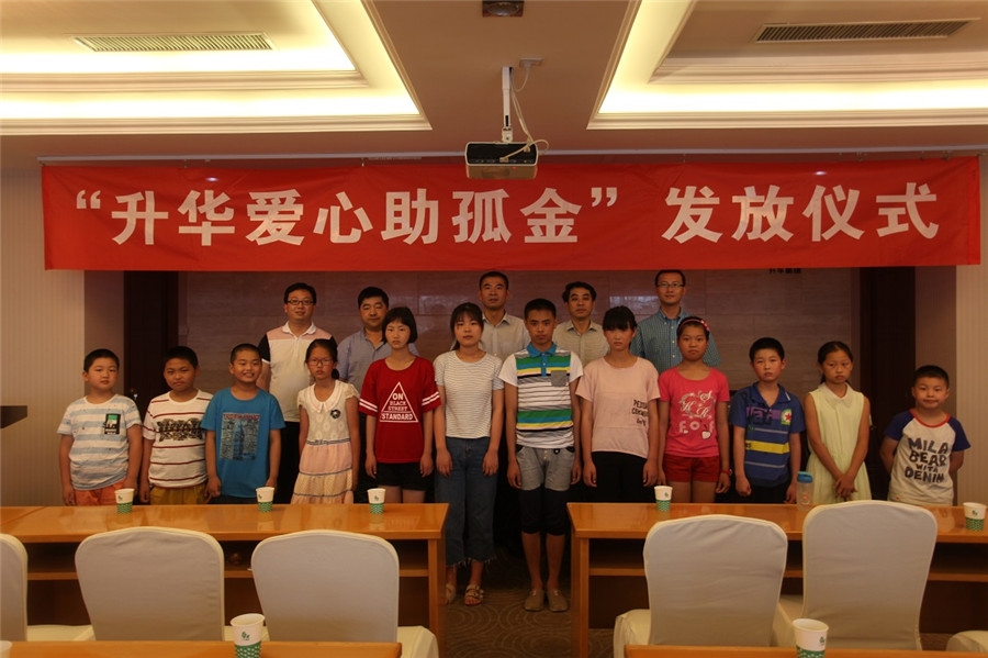 7月6日,德清縣升華慈善基金會(huì)舉行首次升華愛(ài)心助孤金發(fā)放儀式,向鐘管鎮(zhèn)范圍內(nèi)的13名孤兒發(fā)放了一季度共2.34萬(wàn)元資助金。鐘管鎮(zhèn)黨委書(shū)記傅文虎,集團(tuán)黨委副書(shū)記、工會(huì)主席、升華慈善基金會(huì)理事長(zhǎng)鮑希楠參加了當(dāng)天的發(fā)放儀式。
