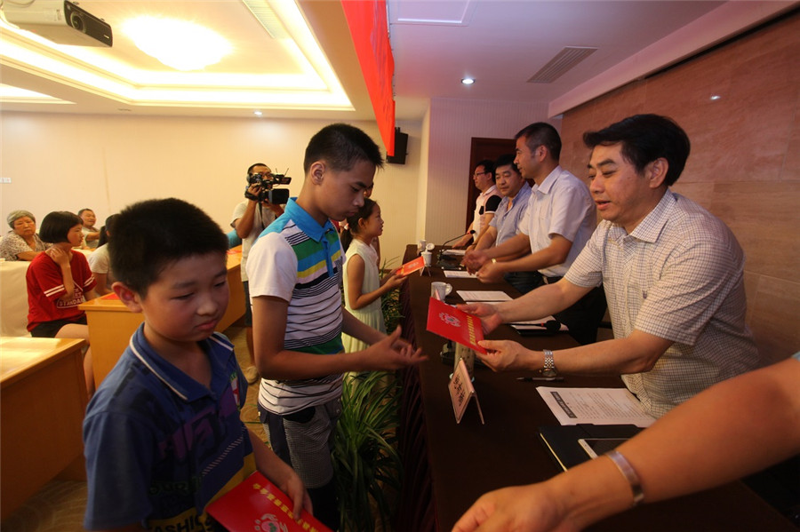 鐘管鎮(zhèn)相關(guān)部門負(fù)責(zé)人,集團(tuán)公司及升華慈善基金會(huì)相關(guān)部門負(fù)責(zé)人,13名受助少年孤兒及其監(jiān)護(hù)人參加了當(dāng)天的發(fā)放儀式。