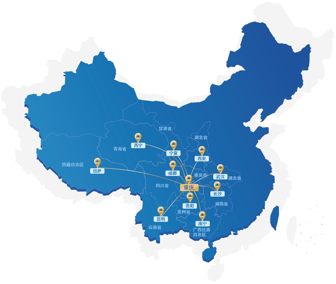 安鉞鋼廠扎根重慶市永川區(qū),以此為核心,銷售腳步主要遍及重慶、成都、昆明、貴陽西南四大中心城市,形成了“一核,四心”的初期銷售路網(wǎng)。